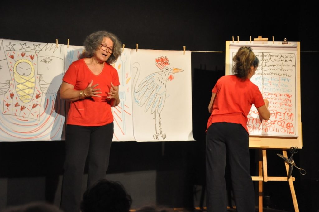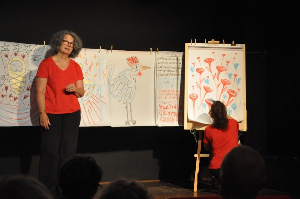 Conte et dessins • Durée : 55 mn • à partir de 10 ans • avec Gaël Dod et Françoise Danjoux – Photos : Sarah Lapière.